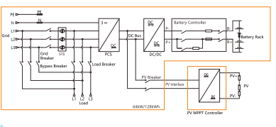 1.High density ng kapangyarihan, mataas na pagsasama, at laki ng compact na madali pag -install; 2.supports Photovoltaic DC Access at I -configure ang Mga Controller ng MPPT, bumubuo ng DC-kaisa PV-EMS microgrid; 3. Ang baterya ng imbakan ng enerhiya ay pinalakas ng isang DC/DC converter, nagpapatatag ng boltahe ng bus ng DC ng system; 4.4G at Wi-Fi Online Intelligent Monitoring, pagpapagana ng malayong mga inspeksyon at pagbabawas ng manu-manong mga gawain sa site; 5.on-demand na paglawak na may awtomatikong operasyon at off-grid Ang paglipat sa panahon ng pagputol ng rurok at pagpuno ng lambak, pagsuporta Pinagsamang kontrol ng BMS, PCS, at EMS Systems na may maraming proteksyon; 6.Strong off-grid single-phase load kapasidad, na may isang maximum na solong Phase load ng 30 kW; 7.Includes Standard Load, Power Grid, PV Access Circuit Breakers at bypass switch, na bumubuo ng integrated distribution ng system na may all-in Isang disenyo; 8.Includes isang built-in na STS at Energy Management System, kasama Ang oras ng paglipat ng mas mababa sa 20 millisecond sa pagitan ng maraming lakas mga mapagkukunan; 9.Supports 1+1 Parallel Operation.