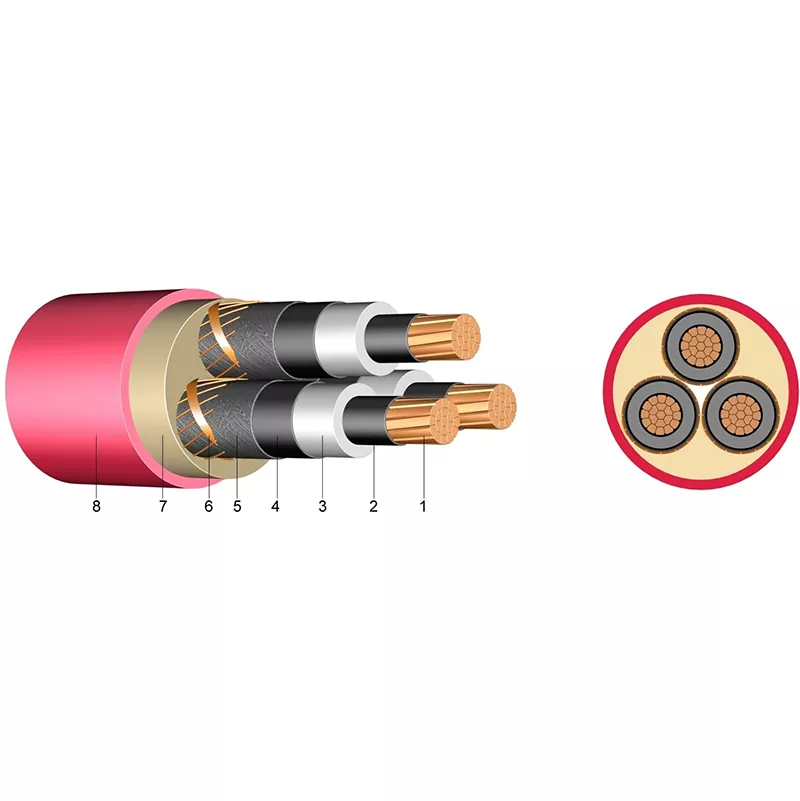 single copper core XLPE insulated na may water blocking powder at aluminum tape na mahigpit na nakadikit sa PE sheath (3 core variant ang available) |